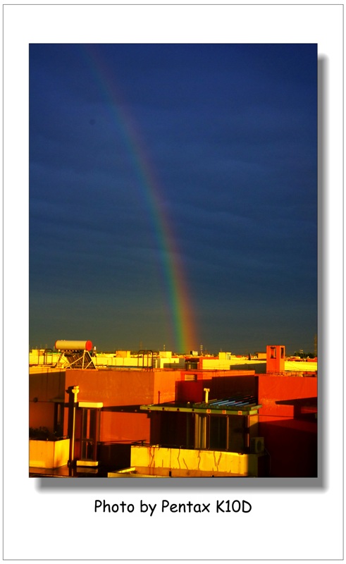 雨停之后,竟然在自家的窗前,看到了彩虹。。。。。。北京的空气质量,经过雨水的洗涤,终于也能出现彩虹了,实在是,61年难遇。