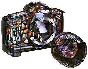EOS 650/620 EOS 650于1987年3月推出,EOS 620于1987年5月推出。 EOS 650于1987年3月推出,EOS 620则晚两个月面世,其两者的外形完全一样。EOS 650是为普通的摄影爱好者而设计的。EOS 620尽管不是专业相机,但其技术指标要比EOS 650高一些,机身内的金属部件也要多些,是为更高层次的摄影爱好者而设计的准专业相机。 这两款单反机的外形显然是继承了Canon的手动聚焦专业顶级单反机T90的风格(T90外形由意大利设计师Luigi·Colani设计),流线型设计,简洁明快,表现不俗。机身外的可调节部件不多,Canon将部分不常用的功能调节部件(如中途退卷、AF方式选择、胶卷感光度设置、自拍启动按钮和电池检查等)装在机身背后的一个小门内,以防止误操作。EOS 620与EOS 650的外形完全一样,区别只是印在机身左边的字样。EOS 650为白色,而EOS 620则为红色。 EOS 650首次采用了Canon独创的景深优先程序曝光方式,该方式大受业余摄影爱好者,尤其是初学者的喜爱,同时也受到部分专业人士的青睐。其六分区综合测光方式似乎是Nikon FA的矩阵式测光和Olympus OM-40的ESP方式的混合物。但它是当时最好的测光系统之一。