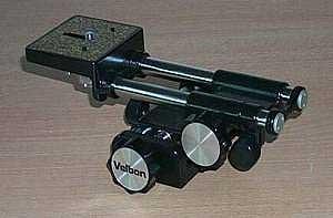 这玩意是微距摄影的有效辅助工具。它能够前后移动65mm,左右移动27mm,均有闭锁旋钮。使用时将相机拧在该架上,再将该架装到三脚架上。