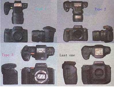 第三阶段:这个阶段就不能乱玩了,得老老实实地干活了。根据前两个阶段的涂鸦和泥团,绘制出外观布局图。正面图、俯视图、侧视图,一应俱全,缺一不可。Z-1的四个设计版本见图3。图中Type 1就是以后的Z-10;Type 2就是原来的SFXN;Type 3有点类似CANON的EOS-10;最后一个就是现在的Z-1了,但在就快上生产线前,某位领导头脑一热,取消了下面的带垂直快门的电池包,现在回过头来看,这家伙真该扣他50年的奖金!
