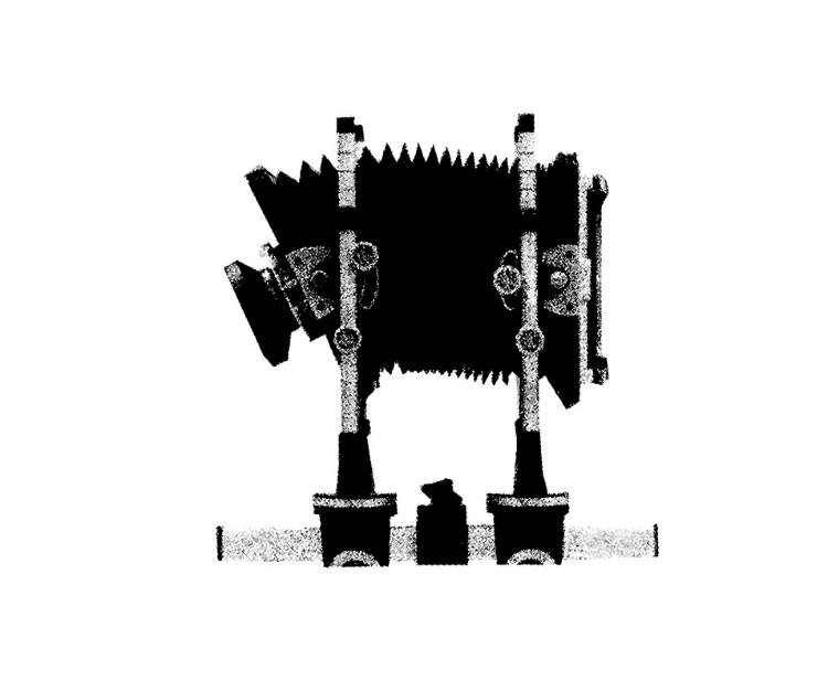 1.影像尺寸大。其尺寸通常为4×5英寸(10×12.7厘米)、8×10英寸,大的可达到20×24英寸。其底片为散页片而不是卷状的胶片。柔性皮腔连接前板与后板,使得焦距及焦距有个调节范围(大片幅相机要使用不同焦距的镜头,没有变焦镜头)。同时在前板与后板之间可沿横竖方向以及角度进行调节,以对被摄景物作透视调整及调焦。