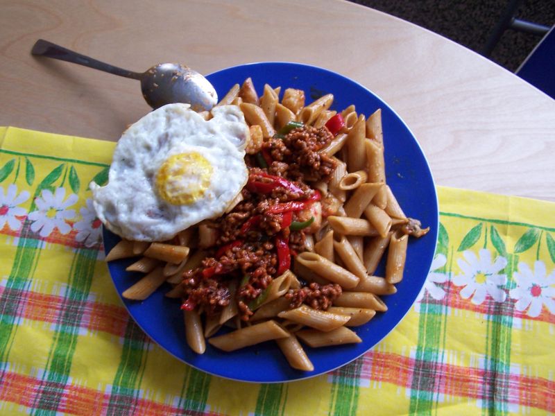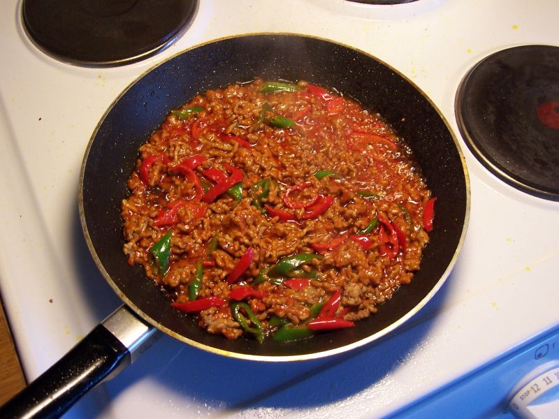 制作意式肉酱,原料有辣椒,肉酱,Pasta酱。色泽上继承了汉风的凝重,几片绿色的辣椒,则又添加了魏晋的飘逸。真是复杂。