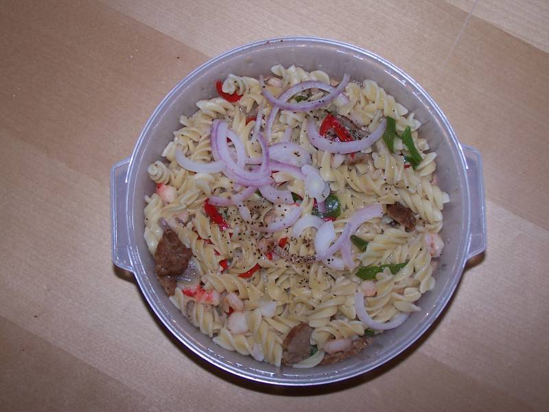 这样,一份海鲜意式肉酱面就做好了。每份299元,外加有大量抽奖机会。便宜你了,老伯。