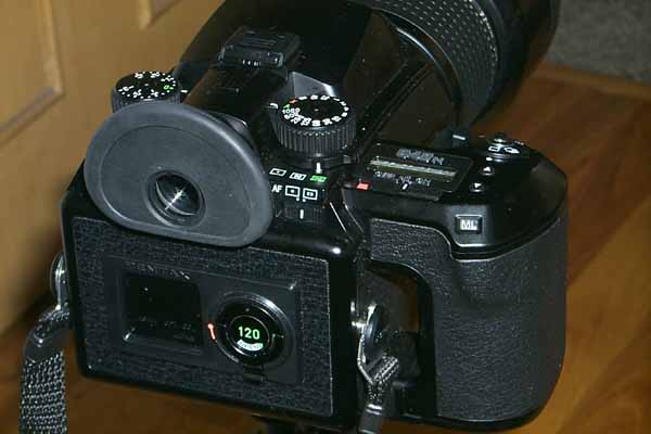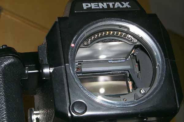 看看pentax 645的后背. 非常的简洁, 和传统的 135相机非常相似.