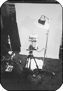 这幅毛线衣的商品摄影(见图一),其拍摄方法为:在被摄体的侧面,角度较低的位置,用一只较硬的聚光灯作主光。在相机机位的上方加一个较柔的辅助光(灯前加描图纸),以减少毛线衣的反差(见图二),照相机俯视拍摄。对于被摄体的测光及曝光都要准确,不可出现影调位移,使毛线衣上出现极浅或极深的颜色。