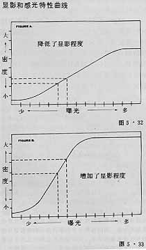 我们已说过感光特性曲线,就是H—D曲线可表示密度与曝光及显影的关系。现在让我们看看显影如何影响密度和反差,这主要有两条: