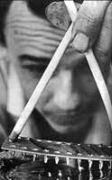 在这幅有力的工业的照片中,浅景深把人们的注意力集中在了工人所把持的焊接容器和电路板上。注意手指的格外清晰度,它与电路板位于同一平面内。而且,工人的脸部也保持着足够的能见度,他的专心致志引起了人们对其所完成工作的关注。