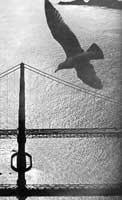 选择一个高视点拍摄金门桥,并选择小孔径以获得最大的景深,弗雷德·莱昂(Fred Lyon)为我们展现了一幅与众不同的旧金山湾景色。海鸥的突然出现以及它非常接近照相机使这幅非凡的作品产生了强烈的比例和距离感。 |