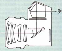 双镜头反光取景器则不然,它产生的影像事实上与胶片影像的大小是一样的,其工作过程如下: