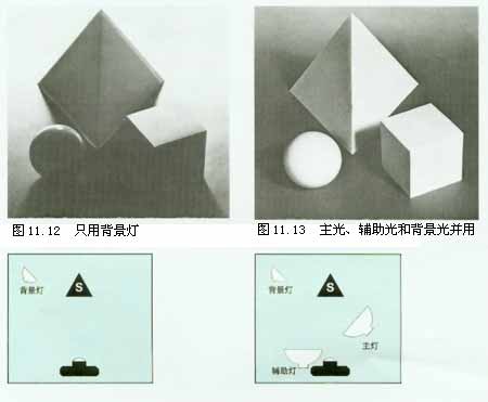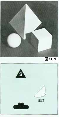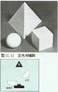 图11.11所示主灯和辅助灯并用的布光效果示意图。