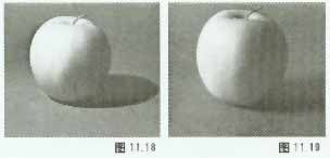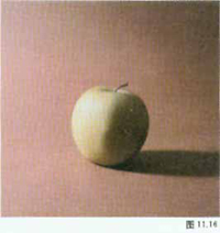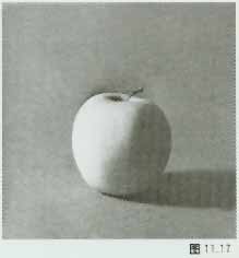 图11.17所示为只用一盏泛光灯做为主灯,并将其置于主体一侧的拍摄情形。图中,主灯位于苹果左侧,光线与苹果成90°角。你可以看到,苹果的左侧很亮,右侧处于较深的阴影中。